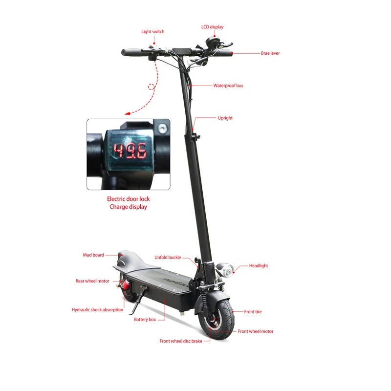 Product Name: 60 KM/H سكوتر كهربائي 1000 واط 48 فولت بطارية المحرك مع مقعد سكوتر كهربائي الكبار عالية الطاقة الكهربائية Escooter Patinete Eletrico