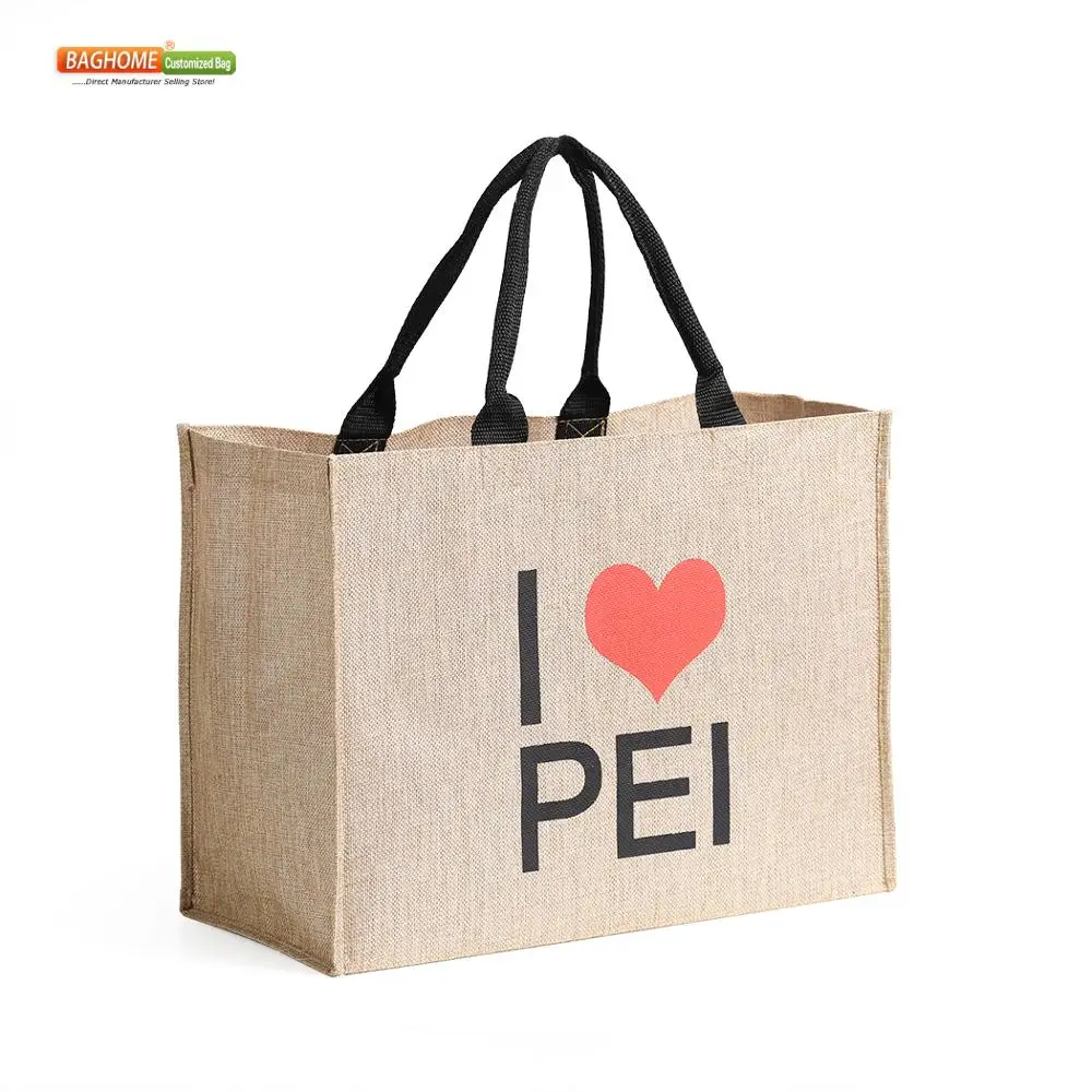 Special Offer 100 قطعة/الوحدة بالجملة مخصص الجوت المواد أكياس التسوق النساء مقبض حمل حقيبة مع شعار Discount 0% Today!