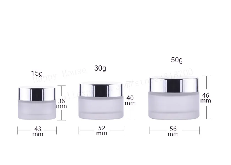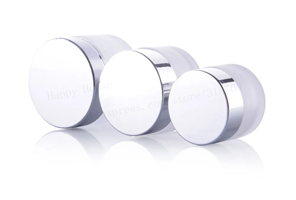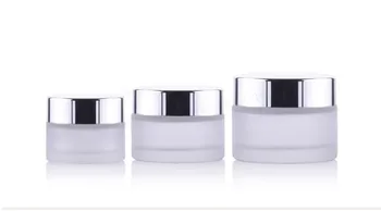 Product Name: جديد وصول 360x15g 30g 50g شفافة الصقيع الزجاج المكياج كريم جرة وعاء حاويات مع الأشعة فوق البنفسجية مشرقة الفضة كاب والأبيض سادة