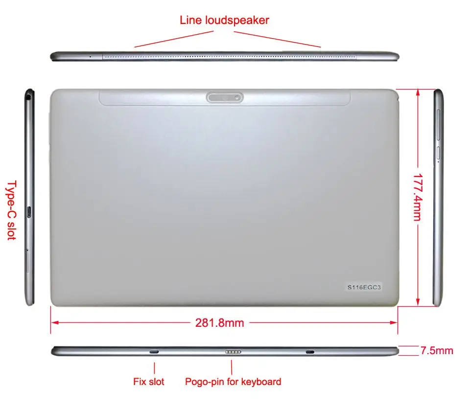 Product Name: 11.6 "1920x1080 MTK6797 عشاري النواة اللوحي أندرويد 8 RAM 6GB ROM 128GB 4G LTE تابلت اللمس أندرويد نتبووك Type-C 10000mAh