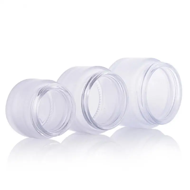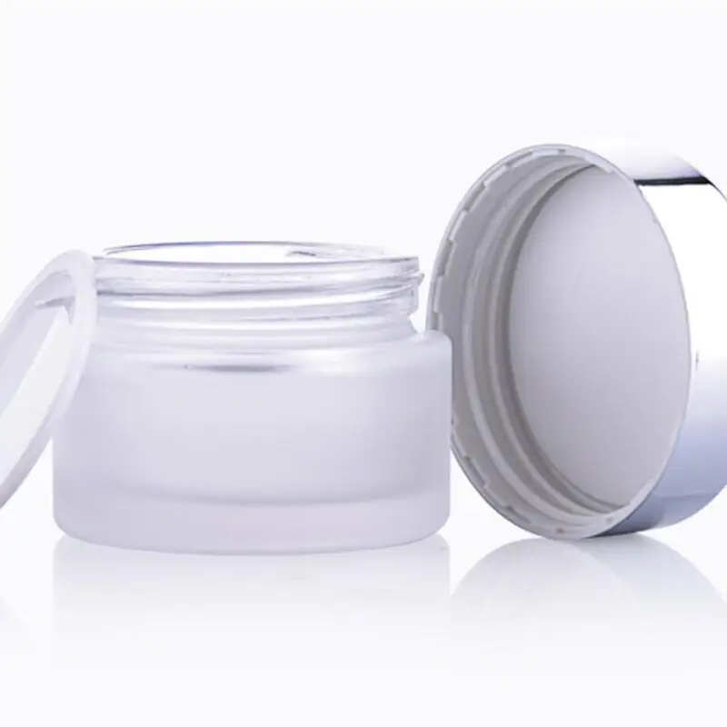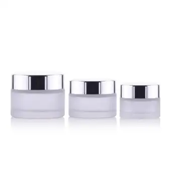 Special Offer تصميم جديد الزجاج الصقيع يشكلون كريم جرة وعاء الحاويات مع الأشعة فوق البنفسجية مشرقة غطاء فضي مع وسادة بيضاء 15g 30g 50g LX9384 Discount 0% Today!