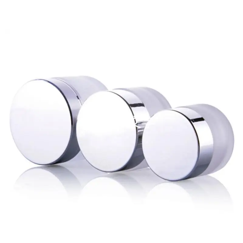 Product Name: تصميم جديد الزجاج الصقيع يشكلون كريم جرة وعاء الحاويات مع الأشعة فوق البنفسجية مشرقة غطاء فضي مع وسادة بيضاء 15g 30g 50g LX9384