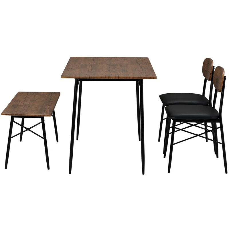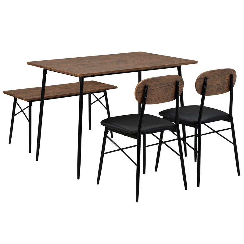 Product Name: طقم سفرة خشبي مكون من 4 قطع مع كراسي مبطنة ومقعد للمنزل والمطبخ وغرفة الطعام