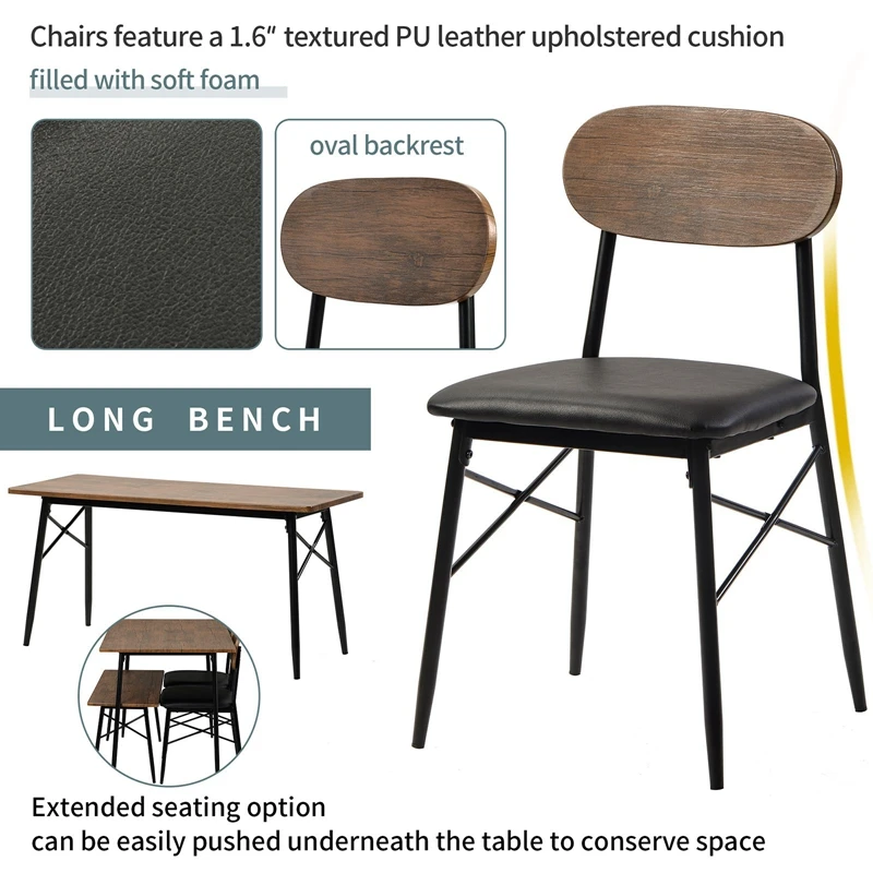 Special Offer طقم سفرة خشبي مكون من 4 قطع مع كراسي مبطنة ومقعد للمنزل والمطبخ وغرفة الطعام Discount 10% Today!