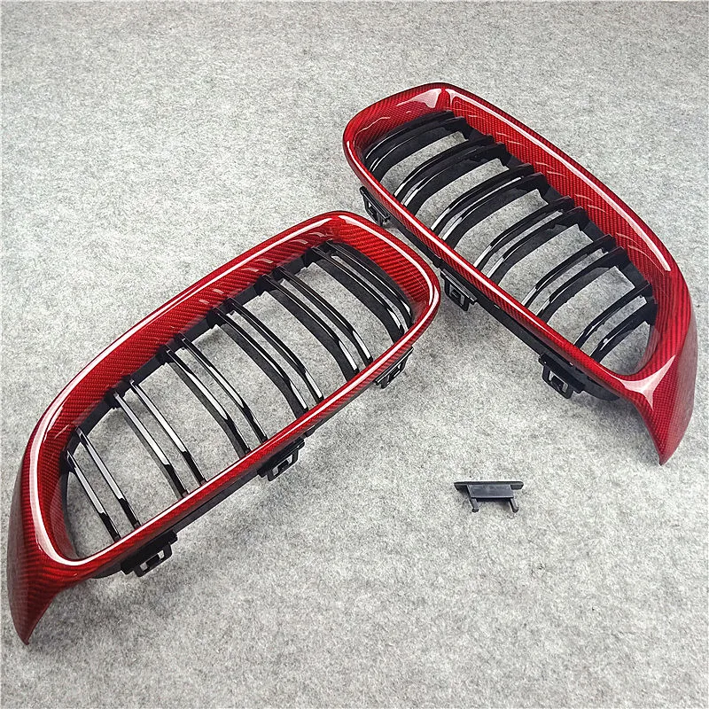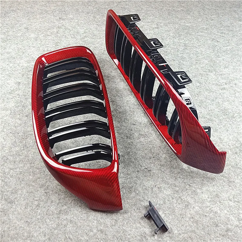 Product Name: 1 زوج الحقيقي الأحمر شبكة ألياف الكربون مصبغة ل 4 سلسلة F32 F33 F36 F80 F82 F83 استبدال المزدوج خط شبكية الرادياتير الأمامية 2013-في