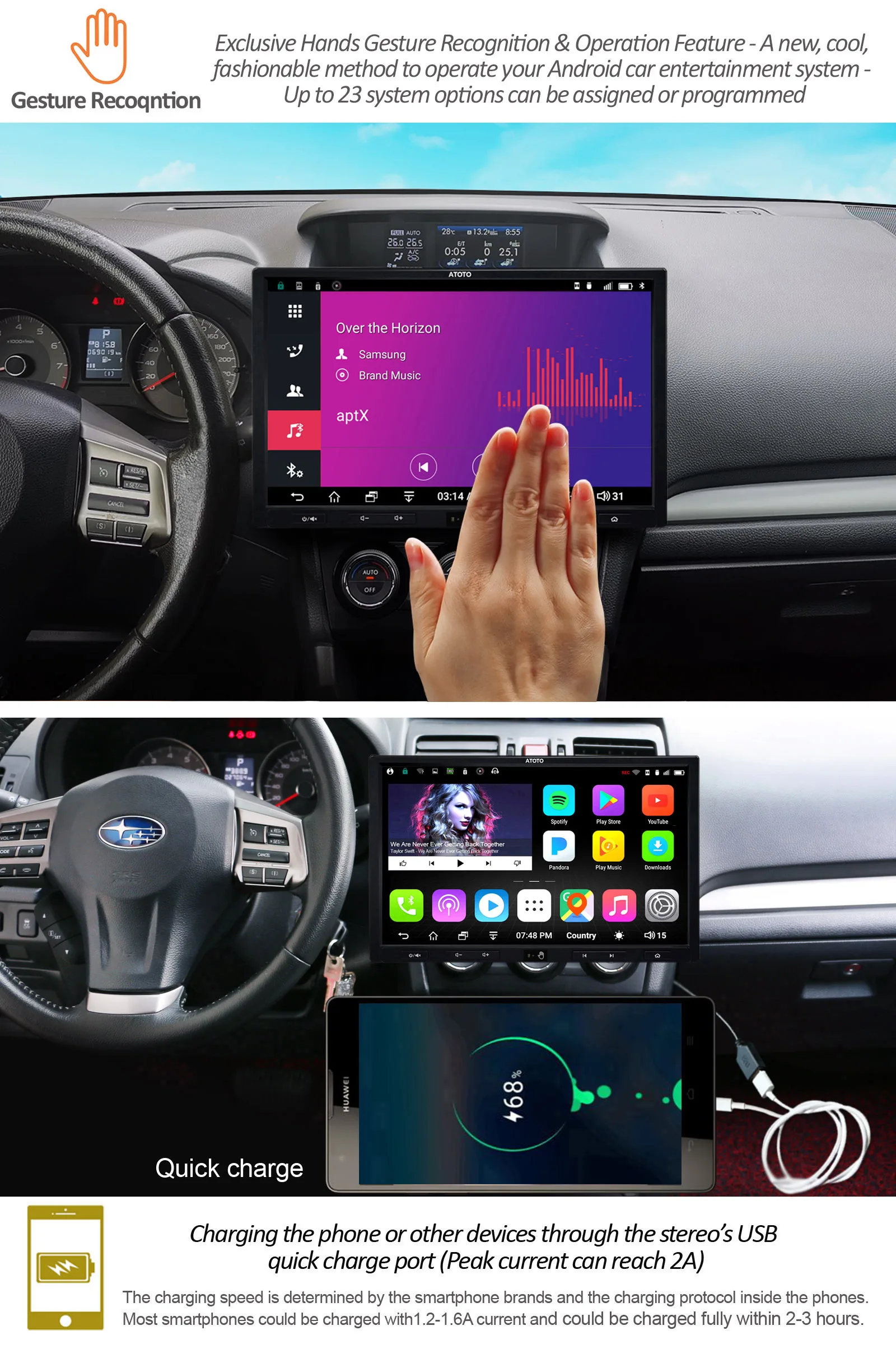 Product Name: [10 Inch)ATOTO A6 2Din Android Car GPS Stereo Player/2x Bluetooth/A6Y1021PRB-G/Hands Gesture Operation /In-dash Multimedia Radio