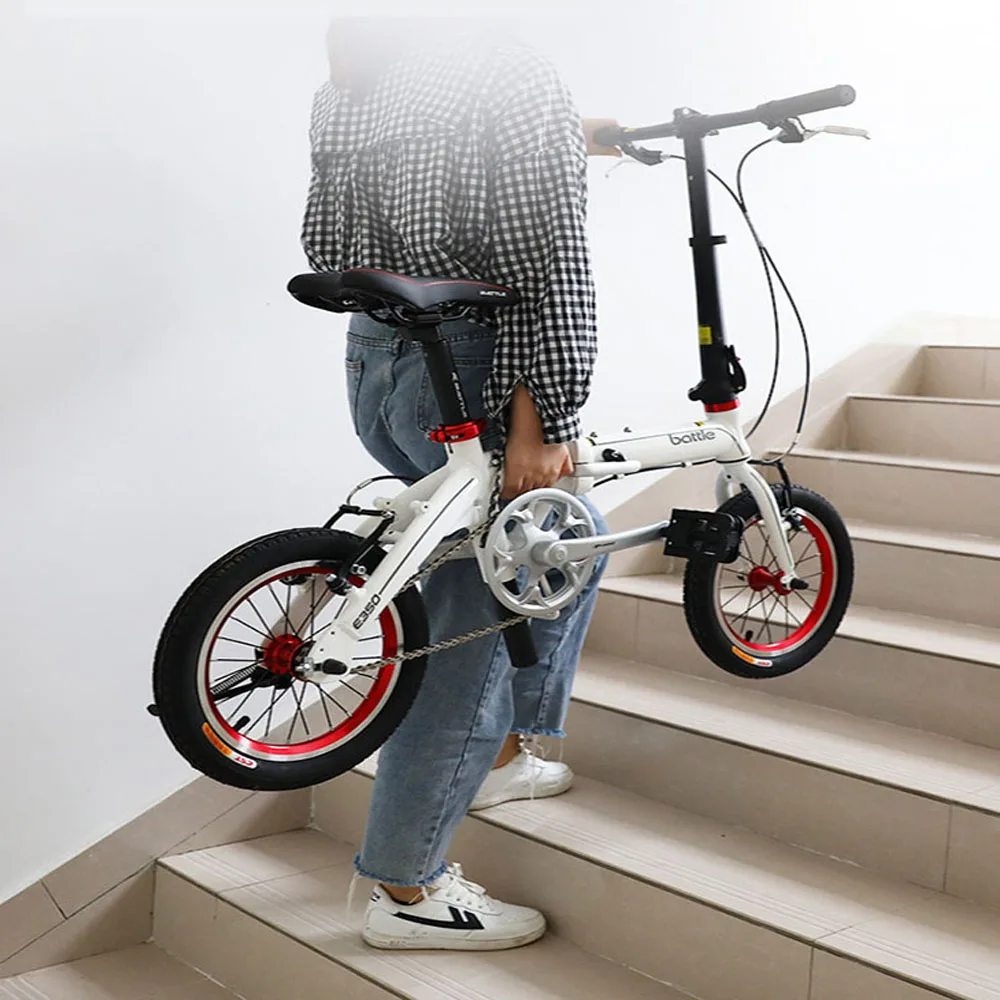 Product Name: 14 بوصة قابلة للطي دراجة سبائك الألومنيوم سرعة واحدة صغيرة جدا خفيفة المحمولة المشي مزدوجة دواسة