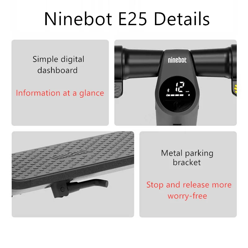 Product Name: سكوتر كهربائي ناينبوت E25/E45 قابل للطي سكوتر كهربائي 36 فولت 30 كم/ساعة بعجلتين للتوازن مقاس 9 بوصة إطارات عالية المرونة مقاومة للانفجار
