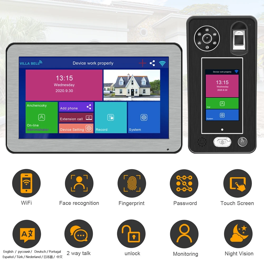 Product Name: نظام اتصال داخلي للفيديو 10 بوصة لاسلكي واي فاي من العلامة مع خاصية التعرف على الوجه وفتح الباب 1080P جرس باب الهاتف