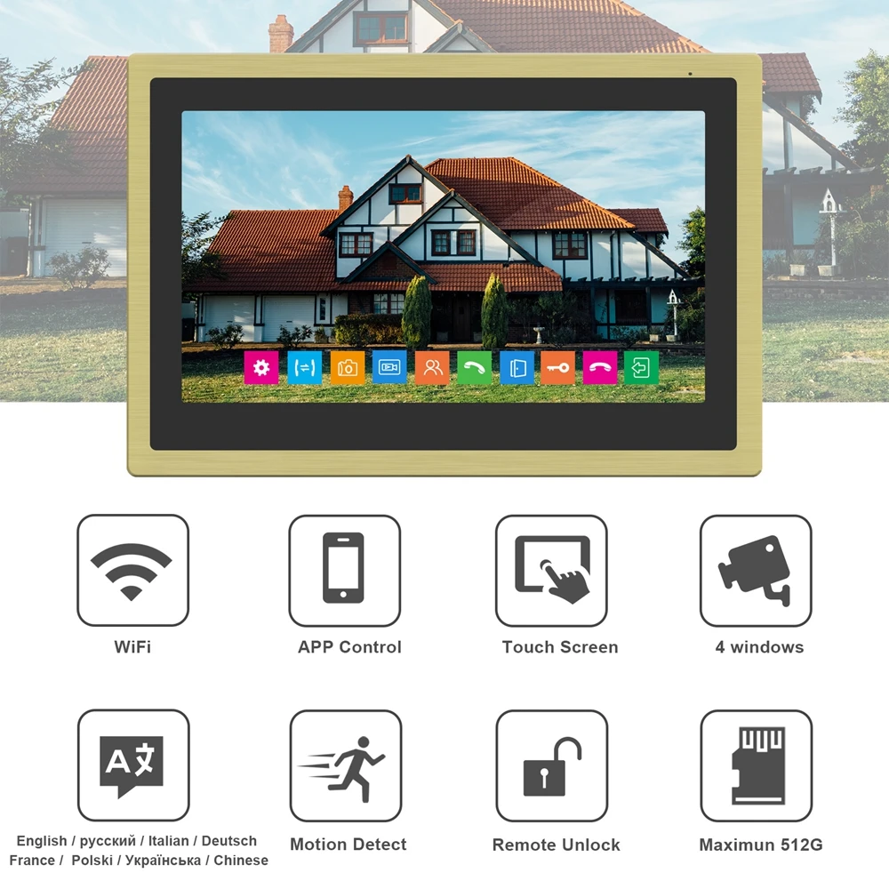 Product Name: واي فاي فيديو إنترفون للحصول على نظام الحماية المنزلي 1080P في الهواء الطلق كاميرا الجرس 10 بوصة شاشة تعمل باللمس مراقبة هاتف ذكي APP التحكم