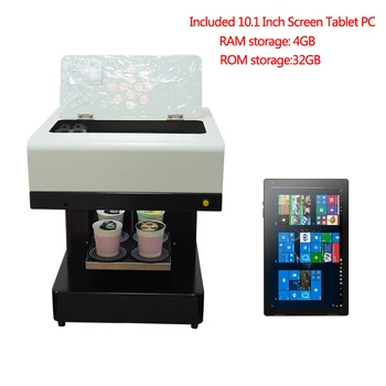 Product Name: 4 أكواب صور شخصية دعونا طابعة القهوة Milktea بيتزا كعكة معكرون الحلوى طابعة مسطحة الغذاء مع 10 بوصة اللوحي