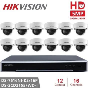 Special Offer Hikvision نظام الدائرة التلفزيونية المغلقة 5MP نظام الكاميرا 16 قناة PoE NVR و 12 قطعة كاميرات اي بي قبة في الهواء الطلق HD طقم مراقبة الفيديو Discount 38% Today!