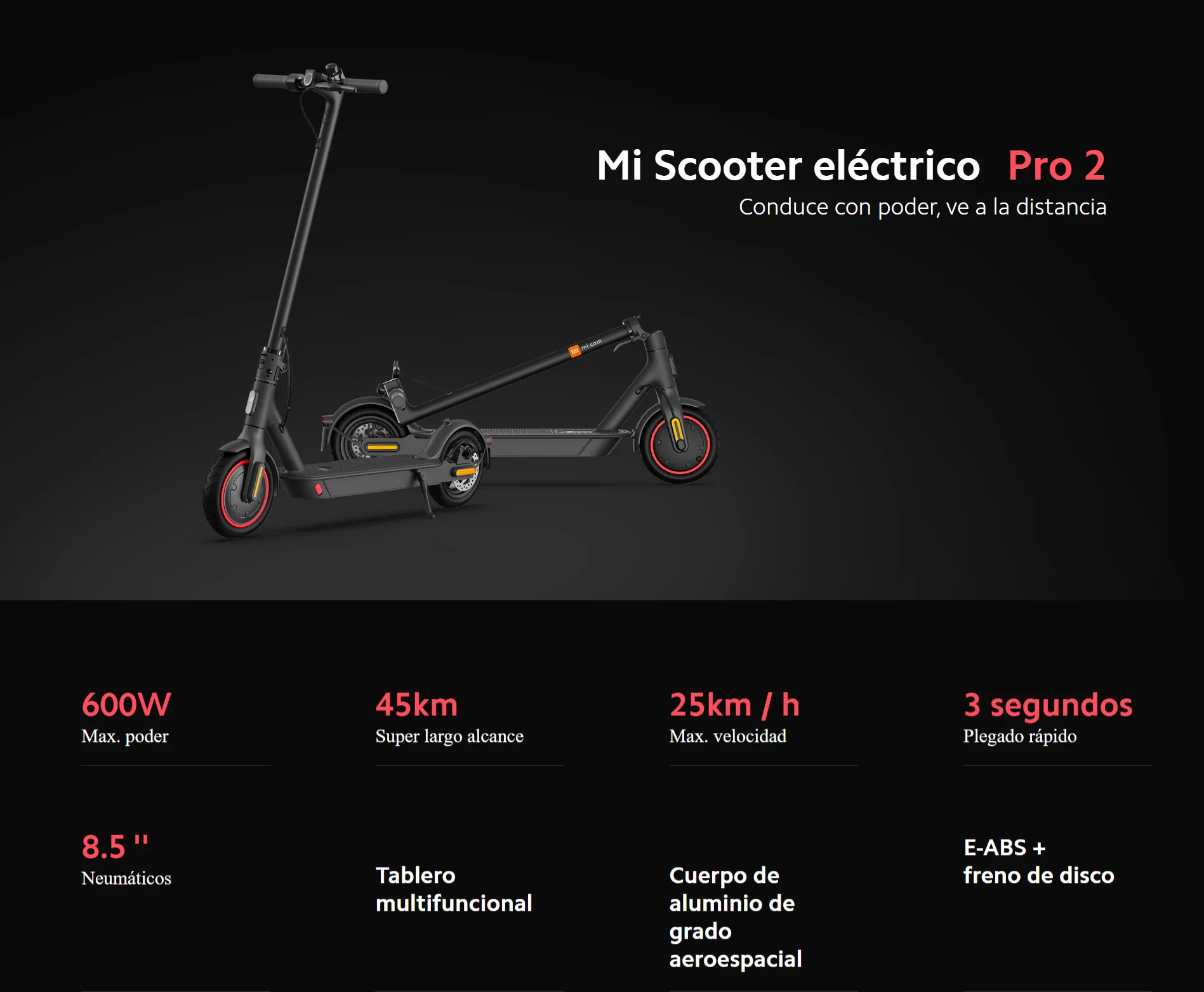 Product Name: دراجة آلية شاومي Mi موديل Eléctrico Pro 2 (600 واط Max. Poder ، 45 كجم Super Largo Alcance ، 25 كم/ساعة Max. Velبدلة ، 3 Segundos Plegado Rápido)