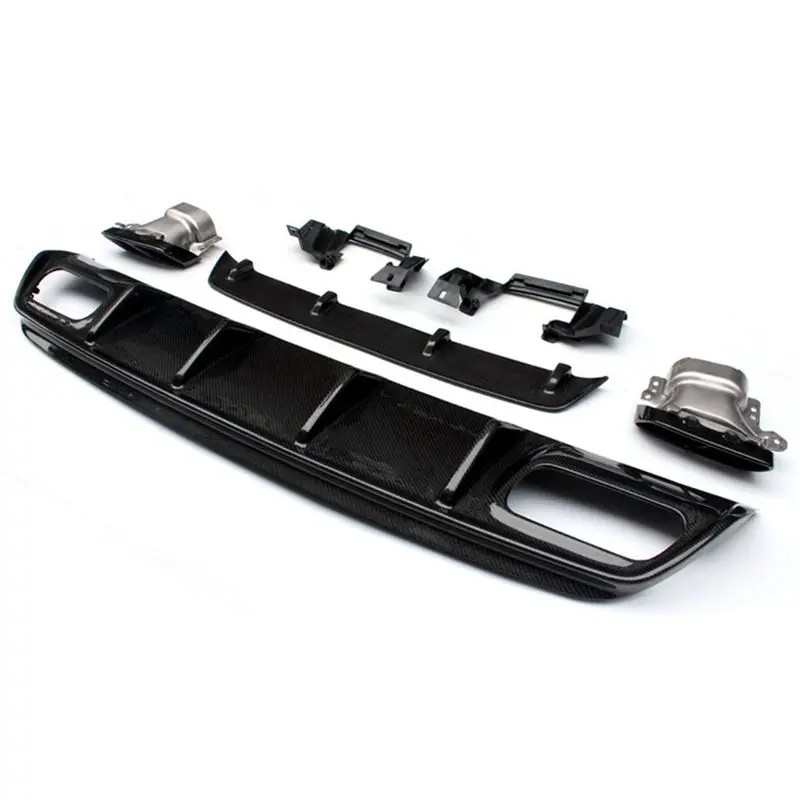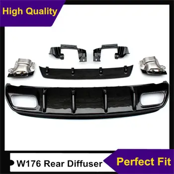Product Name: مجموعة واحدة ل W176 ريال ألياف الكربون مانع صدمات خلفي للسيارة الشفاه الناشر ل B E N Z A الفئة 2013-2017 العادم الخلفي الناشر