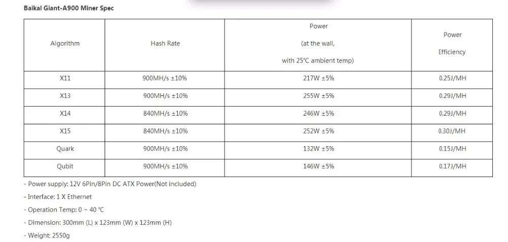 Product Name: YUNHUI Baikal A9 900 متر X11 داش مينر Giant-A900 داش مينر مع خوارزمية PSU: X11 / X13 / X14/X15/كوارك/Qubit