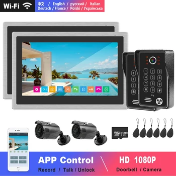 Product Name: واي فاي فيديو إنترفون للشقة اللاسلكية باب المنزل نظام اتصال داخلي 2 شاشات 10 بوصة تعمل باللمس 2 جرس الباب كلمة السر فتح