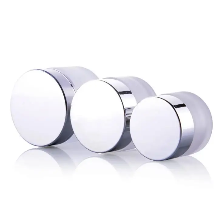 Product Name: 200 × تصميم جديد الزجاج الصقيع يشكلون كريم جرة وعاء الحاويات مع الأشعة فوق البنفسجية مشرقة الفضة غطاء والأبيض وسادة 15 جرام 30 جرام 50 جرام SN1105