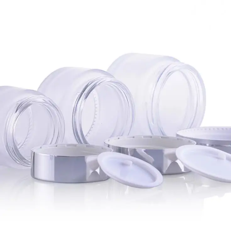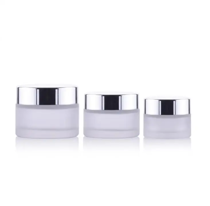 Special Offer 200 × تصميم جديد الزجاج الصقيع يشكلون كريم جرة وعاء الحاويات مع الأشعة فوق البنفسجية مشرقة الفضة غطاء والأبيض وسادة 15 جرام 30 جرام 50 جرام SN1105 Discount 0% Today!