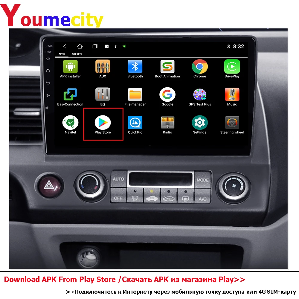 Product Name: 6G Ram + 128G Rom/Wifi + 4G/2Din راديو السيارة ستيريو الصوت اللوحي أندرويد 10 لتحديد المواقع BT مشغل فيديو USB لهوندا سيفيك 4d 2006-2011