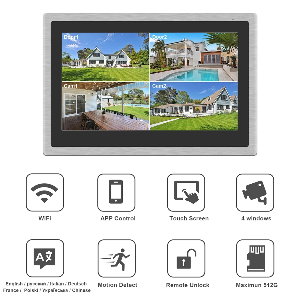 Product Name: HomeFong IP فيديو باب الهاتف واي فاي 10 بوصة شاشة تعمل باللمس رصد دعم هاتف ذكي في الوقت الحقيقي التحكم الرئيسية فيديو نظام اتصال داخلي