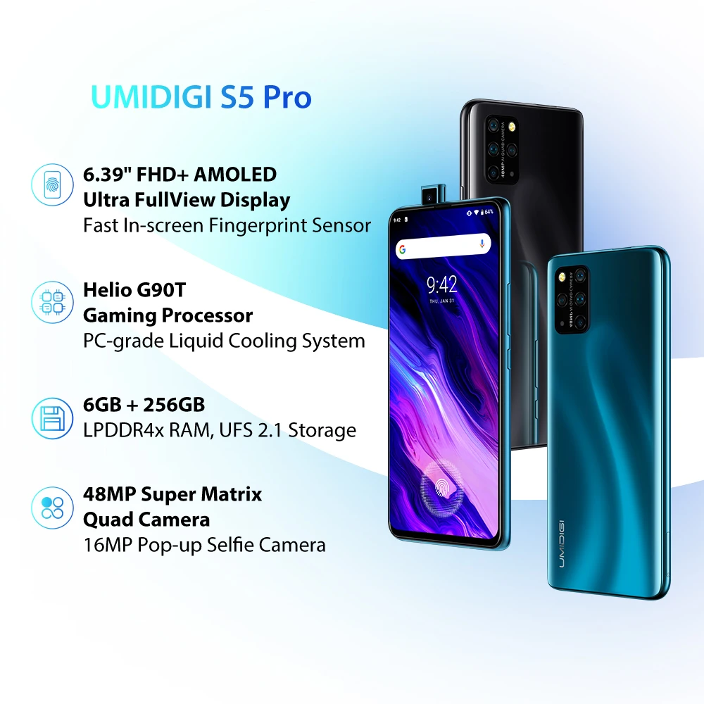 Product Name: UMIDIGI S5 Pro الهاتف الذكي هيليو G90T معالج الألعاب 6GB 256GB FHD + AMOLED في الشاشة بصمة المنبثقة صورة شخصية كاميرا 5G واي فاي