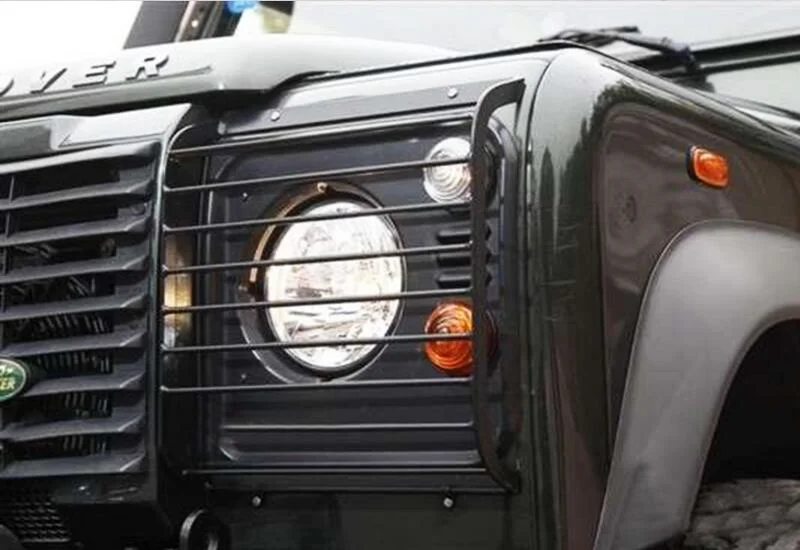 Product Name: لاند روفر المدافع 90 110 130 2004-18 سبيكة سيارة الفولاذ المقاوم للصدأ سيارة الجبهة العلوي الخلفية الذيل ضوء مصباح غطاء الملحقات