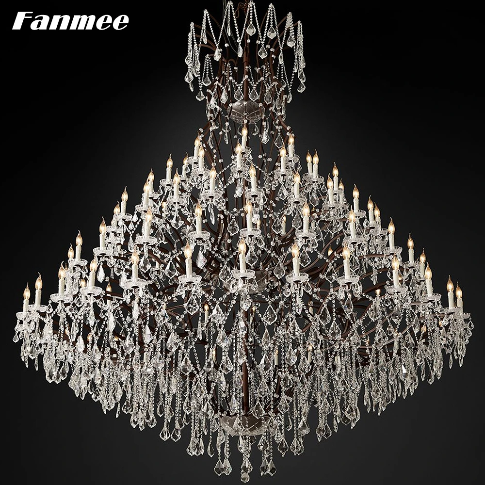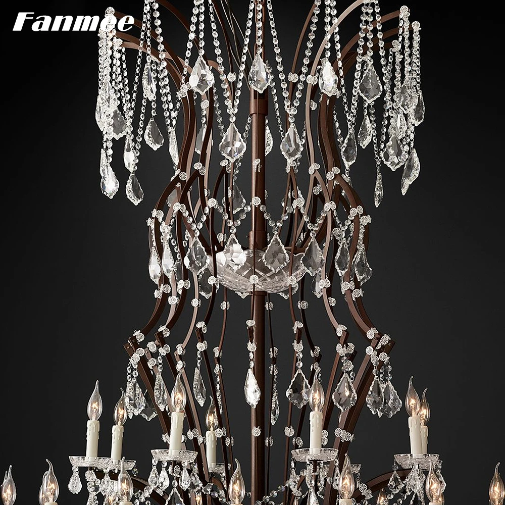 Special Offer 19th C. Rococo خمر الثريا ضوء LED 101 بوصة جهاز استزراع للزهور من المعدن البسيط واضح كريستال ريترو مصباح معلق كبير آرت ديكو غرفة المعيشة Discount 50% Today!