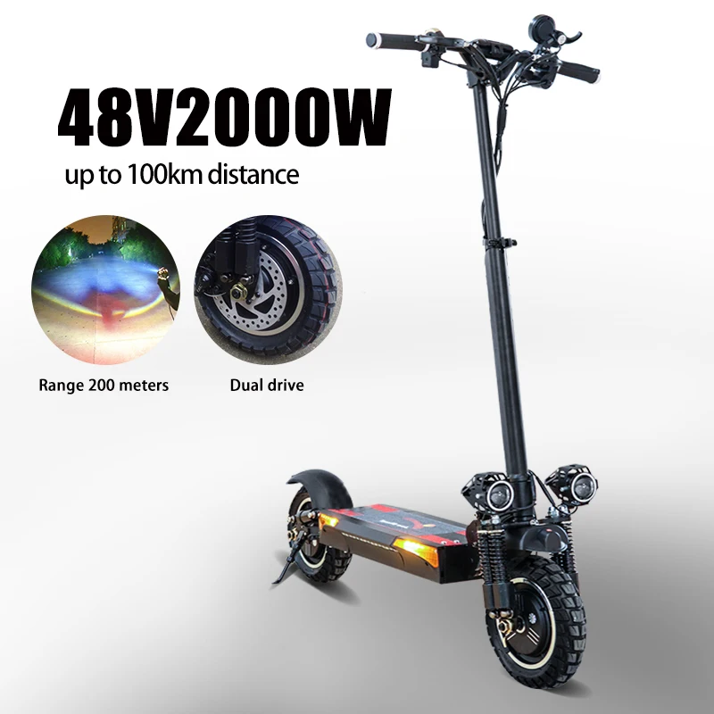Product Name: سكوتر كهربائي 60 Km/h الكبار 48 فولت 2000 واط كيك سكوتر محرك مزدوج مع مقعد يطوي E سكوتر مكبح قرصي لوح تزلُّج