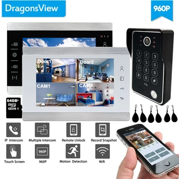 Special Offer Dragonsview 7 بوصة جرس باب يتضمن شاشة عرض فيديو إنترفون واي فاي هاتف فيديو لاسلكي للباب 2 شاشات 1 لوحة في الهواء الطلق مع كلمة السر تتفاعل فتح Discount 59% Today!