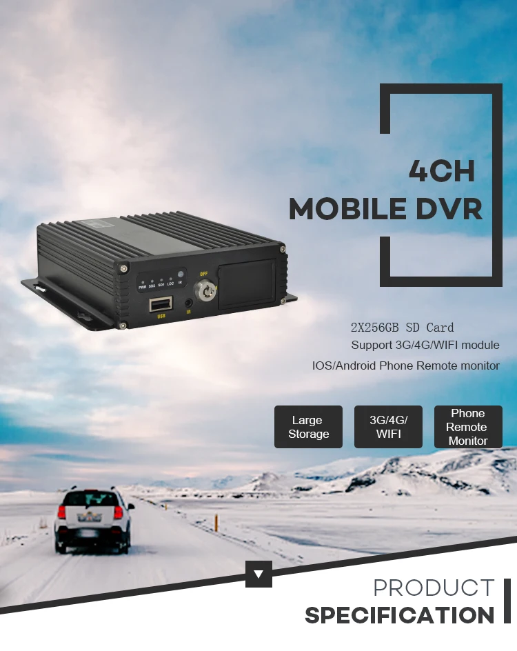 Product Name: 4 قنوات HD 1080P GPS Wifi/3G/4G دعم سوبر ليلة الرؤية المزدوجة Sd بطاقة 2*256G المحمول DVR مع 4 كاميرات و 7 بوصة رصد