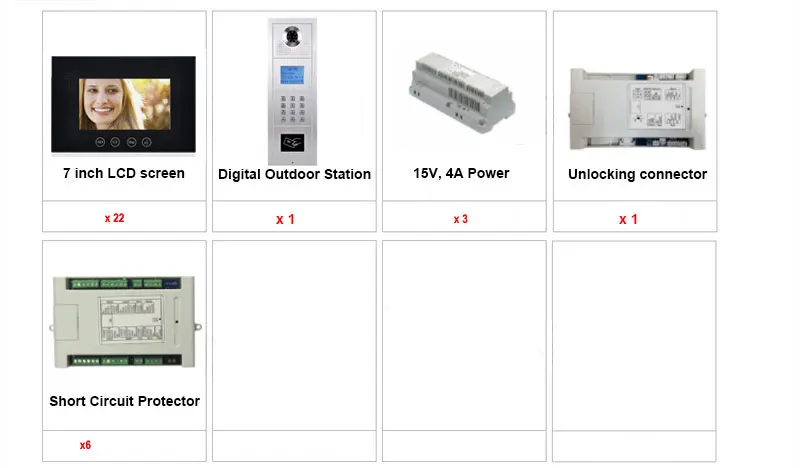 Product Name: شاشة 7 بوصات LCD سبيكة اللون HD IP55 كاميرا مقاومة للماء الرقمية متعددة شقة بناء الفيديو Doophone نظام اتصال داخلي 22 LCD