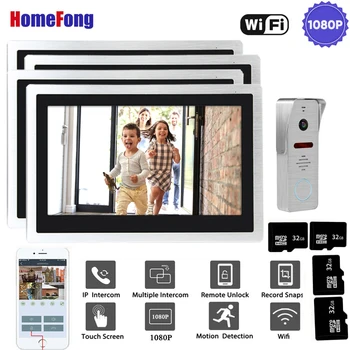 Special Offer HomeFong واي فاي إنترفون هاتف فيديو لاسلكي للباب 10 بوصة شاشات تعمل باللمس 4 مع 1080P كاميرا الجرس التحكم في هاتف ذكي Discount 36% Today!