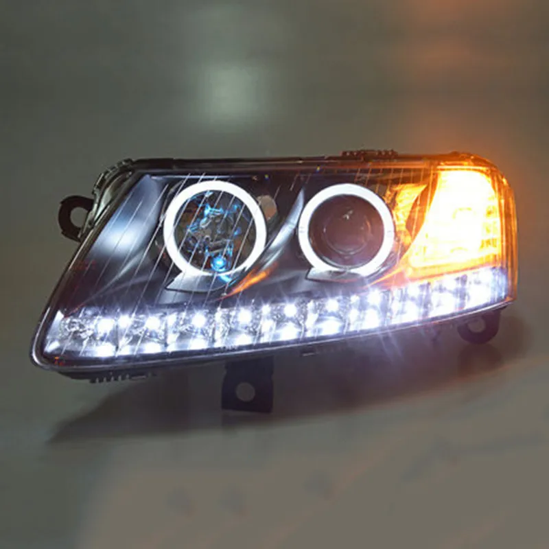 Product Name: مصباح رأس السيارة لأودي A6 المصابيح الأمامية الجمعية ثنائية زينون عدسة مزدوجة شعاع طقم مصباح تفريغ عالي الشدة الضوئية 2005-2011 ل A6L عيون الملاك ر...