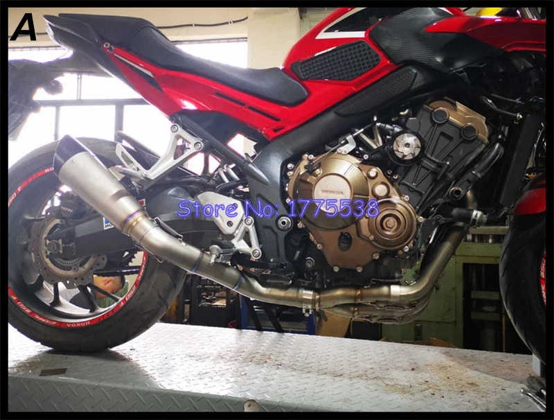 Product Name: سبائك التيتانيوم لهوندا CBR650F CBR650R CB650R 2015-2020 العادم كامل نظام رأس أنبوب الأنابيب الأمامية مع العادم الخمار الهروب