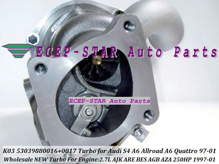 Product Name: K03 0017 53039880017 53039700017 التوربينات توربو الشاحن التربيني ل أودي S4 A6 اولرود المحرك: AJK هي BES 1997-2001 2.7L بالجملة